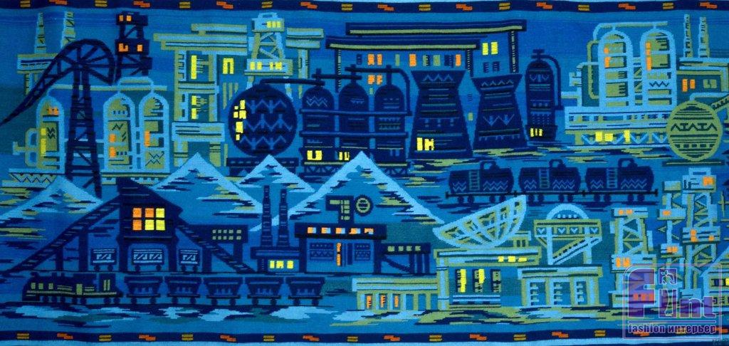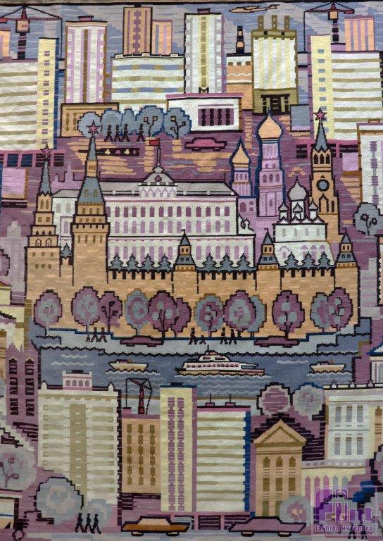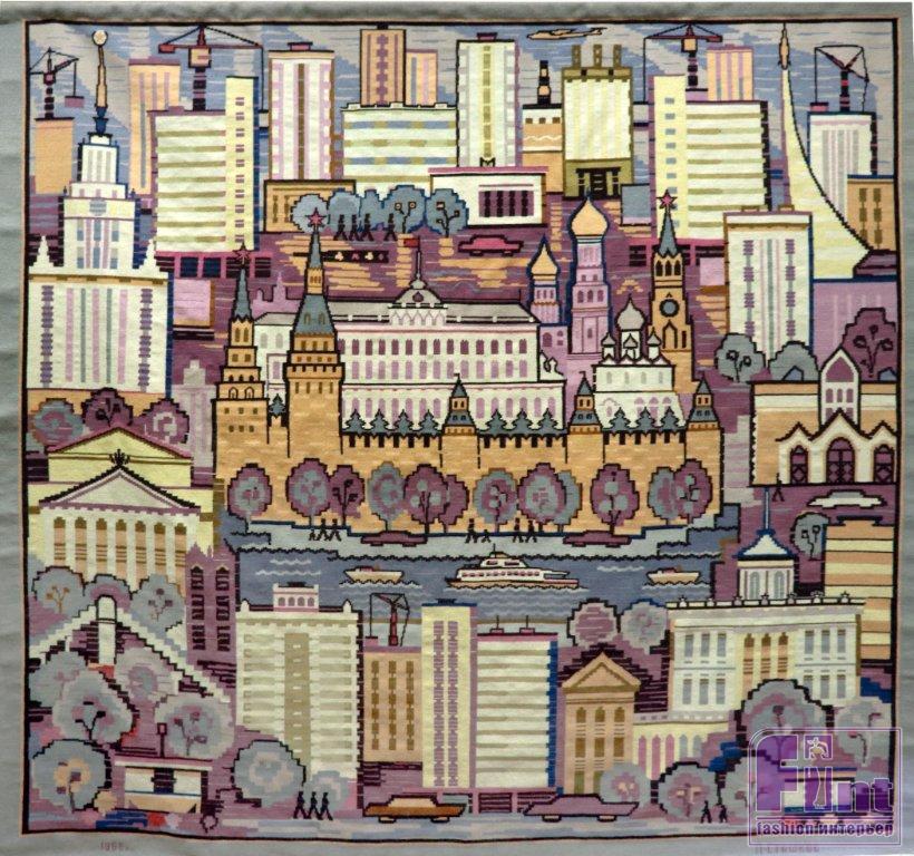 На поверхности ковра собраны изображения Кремля, Большого театра с геометричными новостройками, с «поясами» водного и автомобильного движения, с метро, памятником Гагарину, и строительными кранами. Это обновлённая Москва — предшественница сегодняшней по масштабности задач, по силе освоения людских потоков и скоростей. Этот ковёр представлен на выставке как пример блестящей работы по созданию образа нового города в массовой культуре.