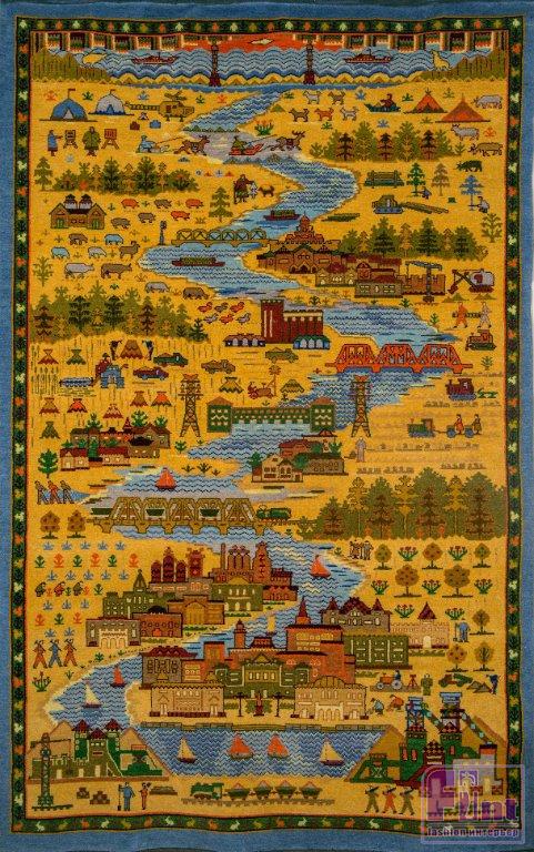 Можно полюбоваться ковром-картой «Иртыш» (1959), посвящённой освоению Сибири, и лучшими образцами массовой продукции, в частности первыми детскими коврами 1960-х и 1970х гг. (г. Суджа, Курская область), в геометрию которых вписаны узнаваемые символы советского детства.