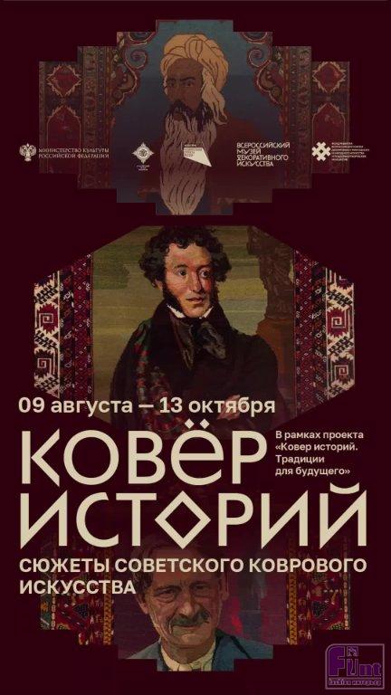 Всероссийский музей декоративного искусства впервые представляет масштабную выставку ковров советской эпохи из собственной коллекции. В семи залах музея представлены ключевые темы и мотивы советского ковроткачества, связанные с построением нового мировоззрения об общем счастье: труд, семья, промышленность, космос, сельское хозяйство, военные подвиги новый быт.