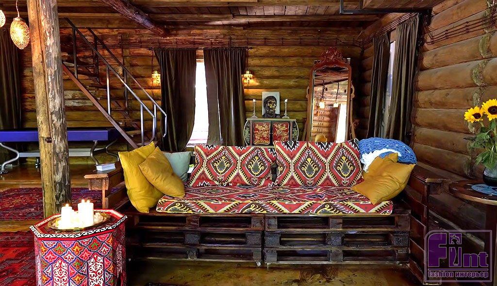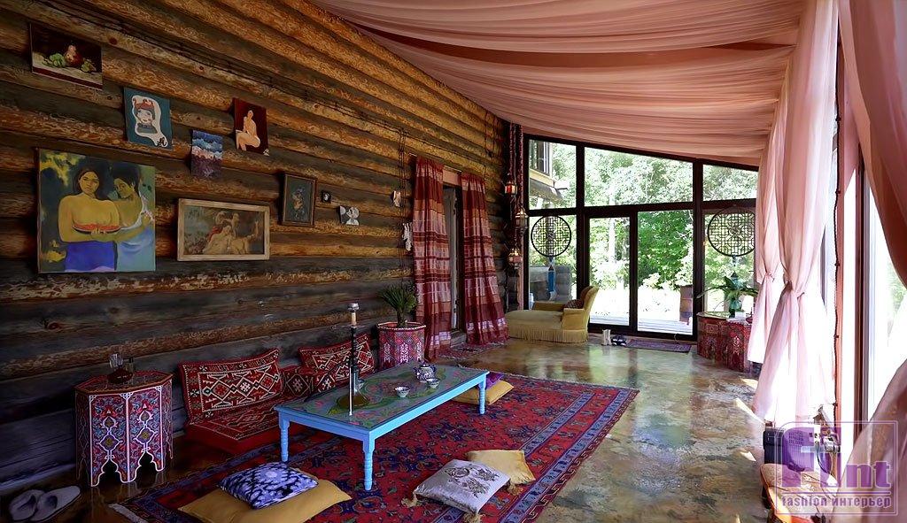 Рада Русских, по её словам, постоянно «развлекается стройкой». Она всегда что-то строит, и этот шикарный дом является уже 41-м по счёту проектом известного визажиста и блогера. Самое первое, что впечатляет в доме Рады Русских – это его невероятный стиль, в котором причудливо переплетены традиции русских бревенчатых изб и явственно ощущаемого вкуса потрясающего марокканского стиля.