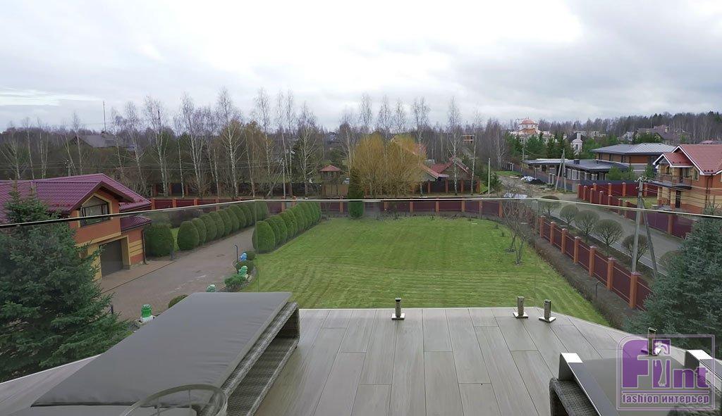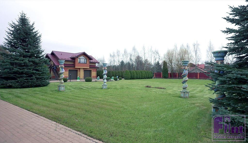 Кирпичный двухэтажный дом с фасадом терракотового и светло-коричневого цвета расположен в одном из живописных посёлков Подмосковья. Сразу бросается в глаза невероятный простор ухоженного участка, окружённого кирпичным, массивным забором. На участке виднеются не только самые разнообразные декоративные деревья и газон, но и огромное количество прогулочных дорожек, что говорит о большой любви хозяйки к длительным пешим проходкам по защищённой территории.