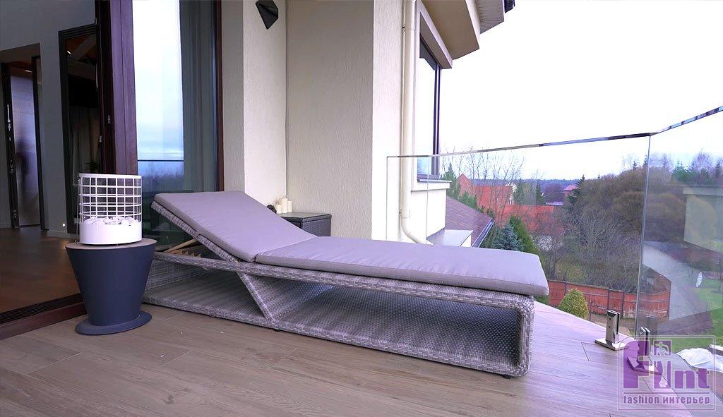Фасад дома дополнительно расширен за счёт эркера, что позволяет мягко увеличить внутреннее пространство нужных, ключевых помещений и не тратить материалы на напрасное «разбухание» общей площади. Часть фасада отделана под декоративный камень. Со второго этажа дома Аниты Цой открывается прекрасный вид на малоэтажную застройку вокруг. Более того, прекрасно видно, что сам посёлок окружён плотным лесным массивом, что создаёт ощущение жизни на лоне природы. Невозможно не отметить просторную террасу второго этажа, на которой присутствует вся необходимая меблировка для длительного и комфортного отдыха и умиротворённого созерцания окрестностей.