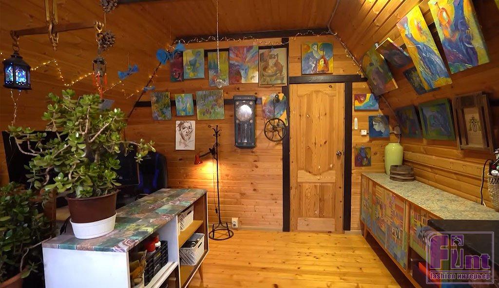 На второй этаж дома актёра Игоря Николаева ведёт обычная деревянная лестница, которая напоминает актёру трап на каком-нибудь корабле. Сразу с лестницы открывается просторная комната, стены которой напоминают небольшой музей из-за обилия художественных произведений, развешанных на них. Здесь же оборудовано небольшое рабочее пространство с верстаком и инструментами, которые хозяин дома использует для поддержания дома и приусадебной территории в жилом состоянии. Из широкого окна комнаты открывается шикарный вид на придомовой участок актёра, на котором растут берёзы и сосны.