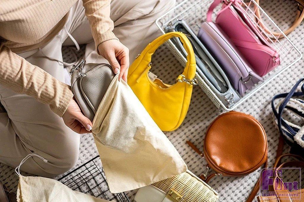 Дешёвый и легкий пластик не подходит для длительного хранения. В пластиковых пакетах одежда, скорее всего, не будет «дышать» и начнет неприятно пахнуть. Поэтому лучше выбирать текстильные или бумажные аналоги. Например, раскладывать одежду, обувь, аксессуары по группам удобно в хлопковые мешочки (их легко сшить самостоятельно, но и готовые стоят немного). А уже их убирайте в один большой кофр — тоже лучше тканевый.