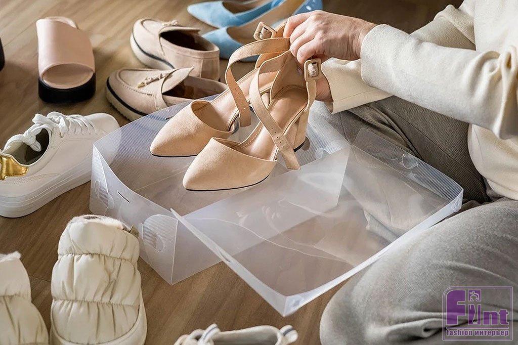 Шлепанцы и сланцы складывайте просто вплотную друг к другу — у них почти нет элементов, которые могут деформироваться. А вот босоножки, балетки, туфли лучше хранить, как в магазине, — используя распорки (чтобы не смялись задники), бумажные наполнители для мысков, пыльники. Так обувь не испортится. Складывать пары в пыльниках или мешочках можно в картонные коробки от производителя, специальные органайзеры, каркасные кофры или прямо на полку.