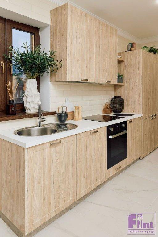 Кухонный гарнитур модульный: он состоит из отдельных шкафов, которые при необходимости можно докупать. В гарнитуре уже есть всё необходимое: варочная поверхность, духовка, холодильник, мойка и смеситель. Такой гарнитур можно купить, выбрав готовую модульную кухню, или собрать самостоятельно из отдельных предметов.