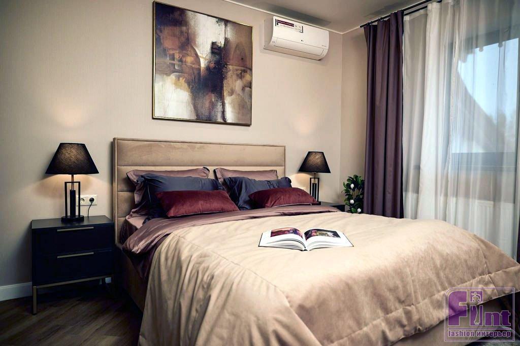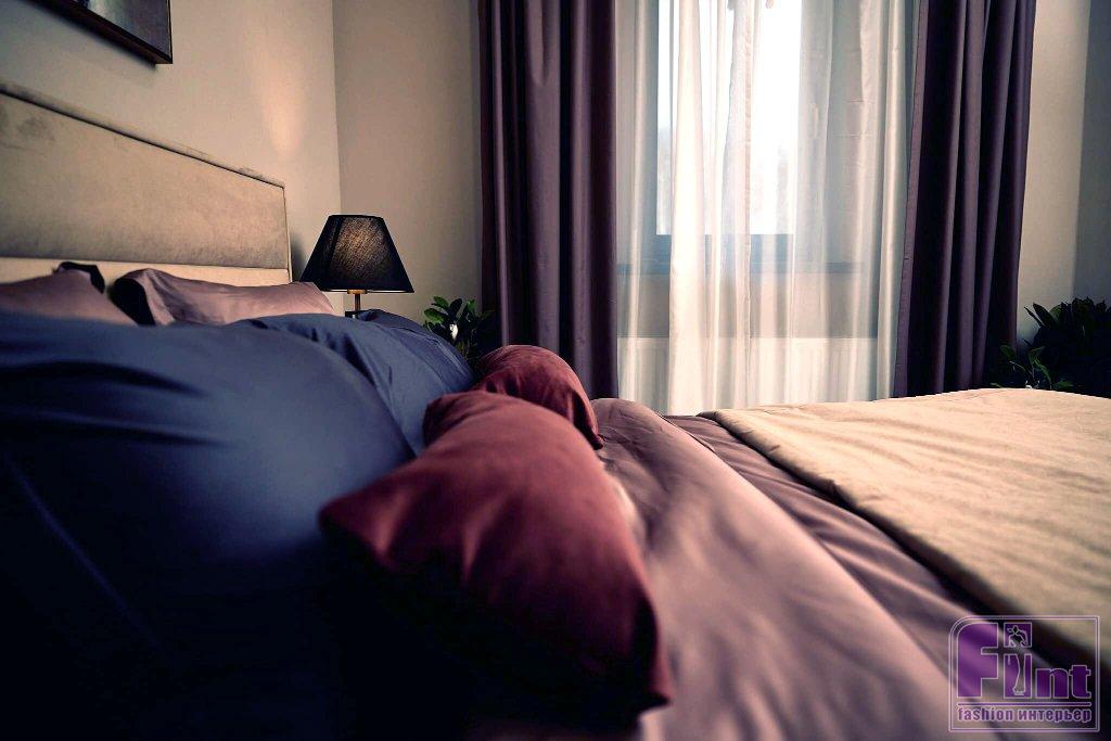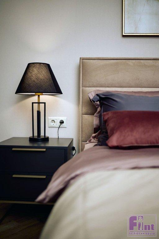 Для второй спальни вдохновением послужил Токио. Этот город — смесь традиций и технологий. Комната получилась на контрасте: тёплые светлые стены и контрастная мебель. Декор в красно-золотых и бордовых оттенках выглядит роскошно и изысканно. Центральным элементом комнаты стала кровать Laima с внушительным изголовьем. Её украшают подушки в тёмных цветах, которые перекликаются со шторами.