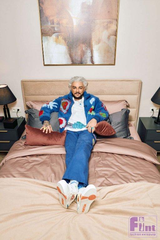 Филипп Киркоров обратился в Askona Home с просьбой обустроить один из гостевых домов в его загородной резиденции. Дом двухэтажный: на первом этаже находятся кабинет и кухня-гостиная, а на втором — две спальни. Общая площадь дома составляет 100 кв. м. Основная идея проекта — путешествие. Ведь в гостевом доме останавливаются люди, которые как раз его совершают. Каждая комната воплощает отдельное место на карте: Африка, Бали, Англия, Токио.