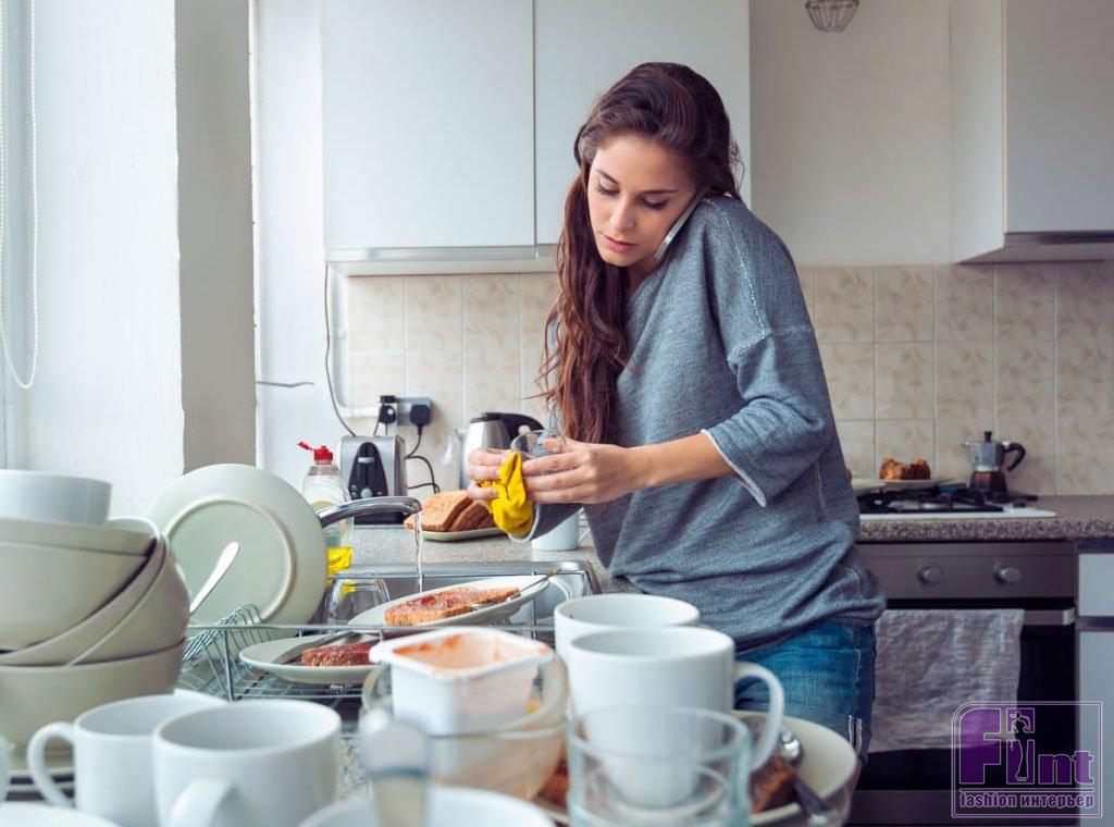 Скопление грязной посуды в раковине — идеальная среда для размножения бактерий. Ещё это выглядит неряшливо и портит интерьер кухни. При наличии посудомоечной машины сложить пару грязных тарелок в неё не дольше, чем в раковину. Если прибора нет, лучше сразу после готовки или приёма пищи вымыть посуду и расставить на сушилке, не накапливая целую гору в мойке. Не забывайте про сковородки и кастрюли на плите, которые часто остаются незамеченными в процессе мытья посуды, и остатки пищи в них могут засыхать до следующего дня.