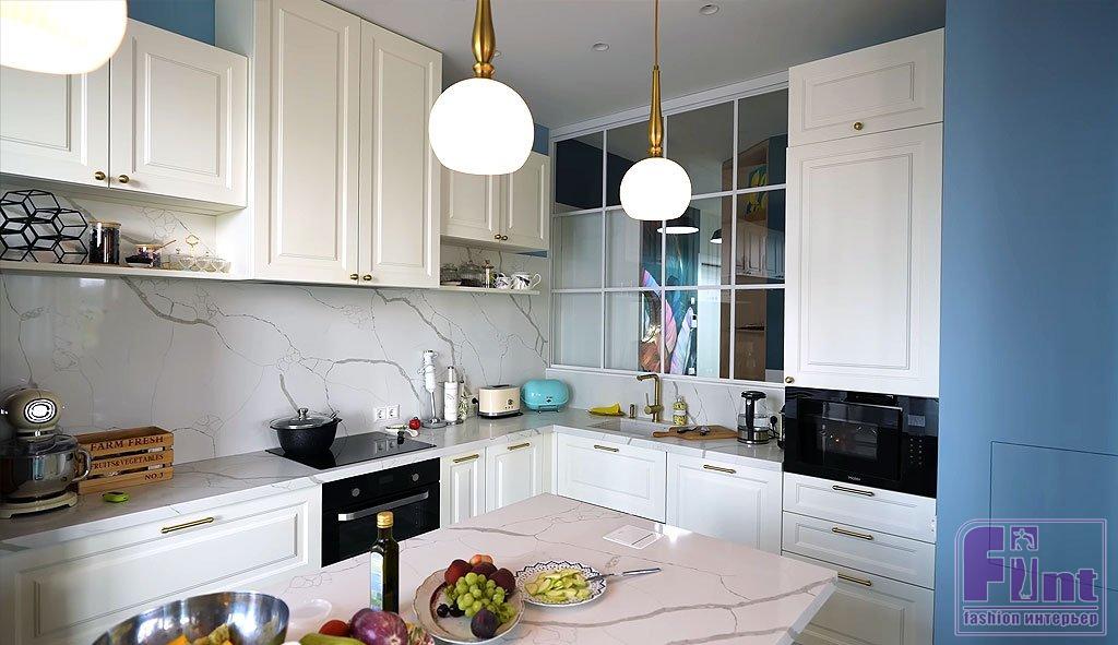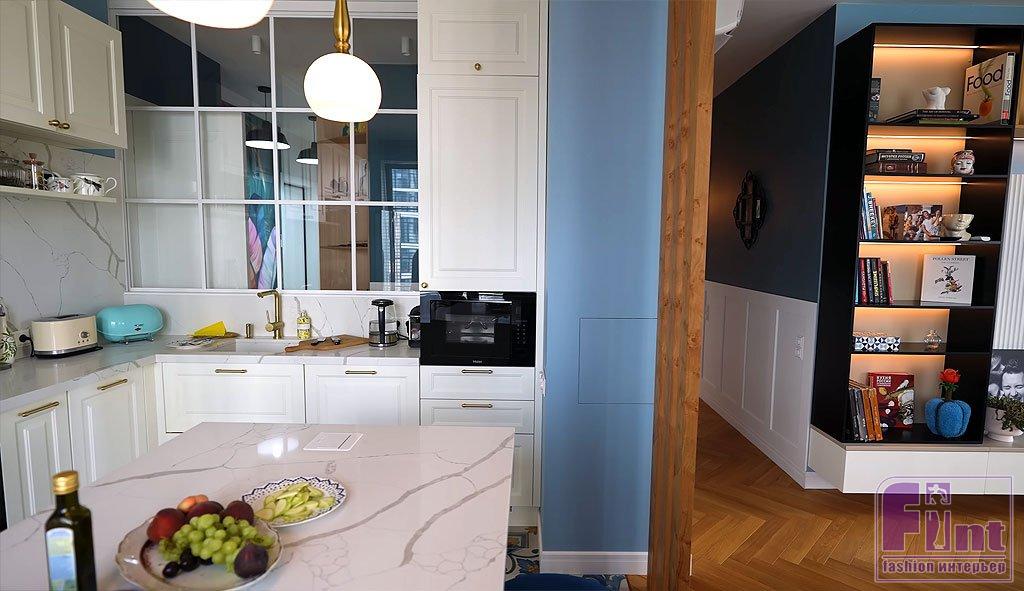 В квартире Александра Бельковича, как и во многих современных новостройках, нет балкона. Зато там есть два санузла, оборудованные для детей шеф-повара и для него с супругой, одна хозяйская спальня, две комнаты для детей и отдельная гардеробная. Кухню повар решил совместить с гостиной и увеличить её площадь, для чего пришлось пожертвовать несколькими метрами в спальне. При этом благодаря интересному интерьерному решению в виде большого внутреннего окна, кухню можно увидеть прямо из прихожей. А ещё это окно зрительно увеличивает площадь зоны приготовления пищи. «Кухня должна быть светлая, большая и функциональная», — считает Белькович.