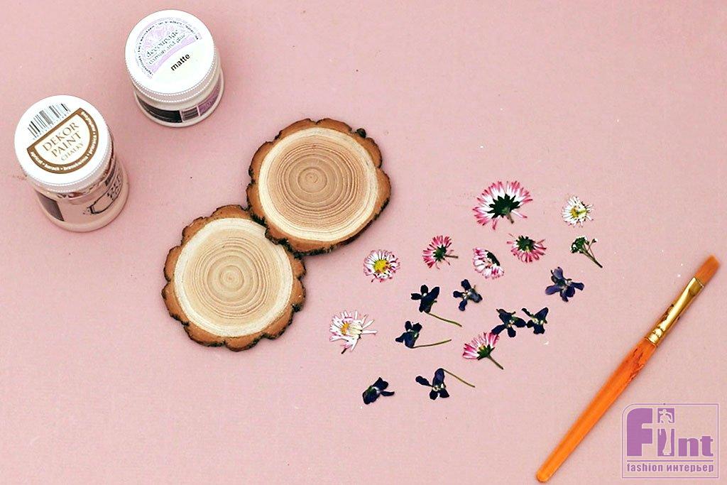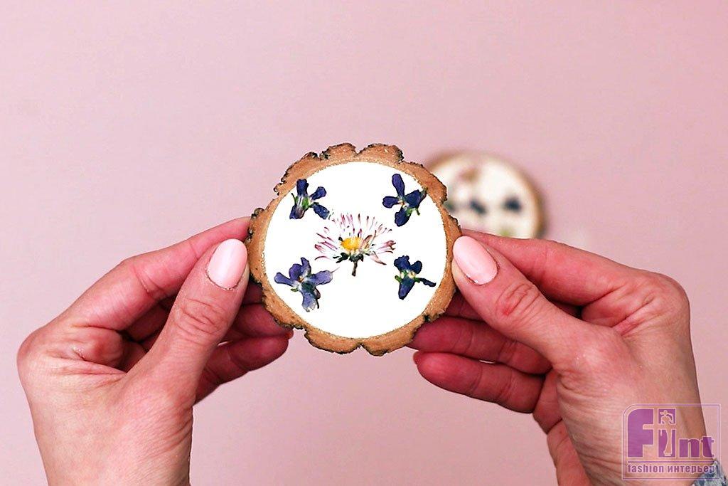 Храните ли вы такие засушенные цветы просто на память или используете их в своих DIY проектах, давайте попробуем ещё один отличный способ продемонстрировать свои засушенные растения. Это удивительная по простоте и красоте идея позволит нам превратить самые обычные деревянные спилы в потрясающие кухонные подставки, которые станут отличным украшением интерьера любой кухни и не только.