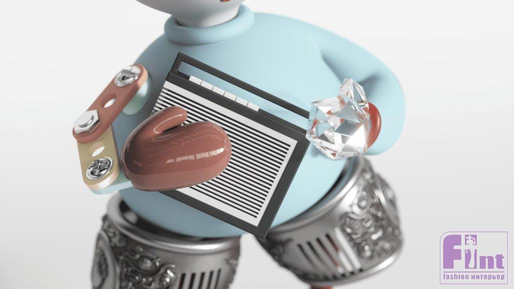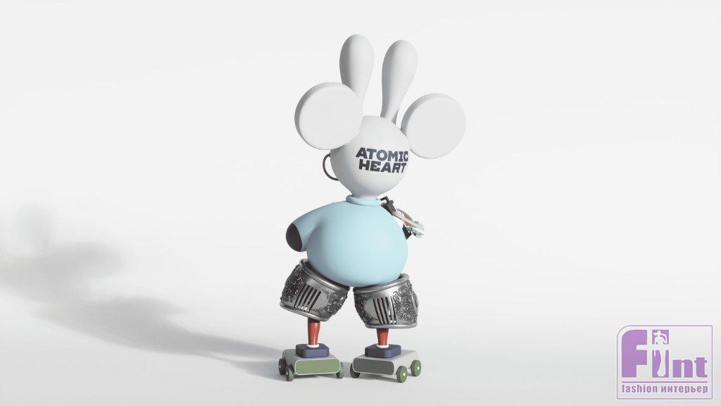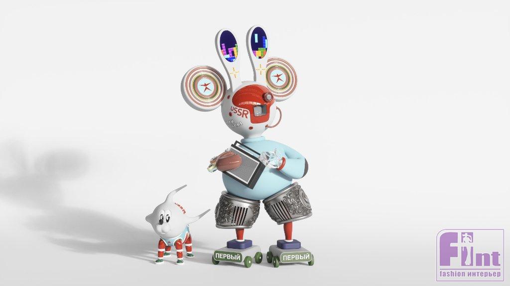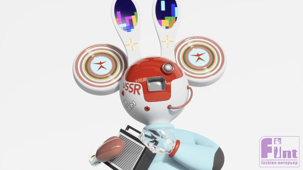 Голова персонажа соединяет в себе элементы робота «Элеанора» из игры Atomic Heart и советского скафандра, а уши, явно позаимствованные у Чебурашки, выглядят как крышка от мази «Звездочка», только вместо золотой звезды здесь фигура, напоминающая контурами всем известный знак качества СССР.