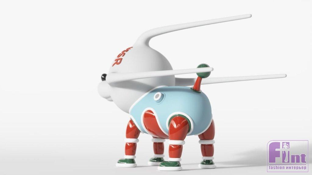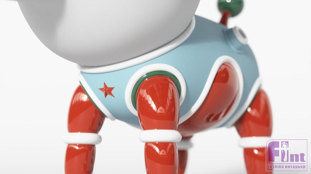 Но больше всего удивляют «подштанники» из серебряных подстаканников с изображением знаменитых роботов-балерин Близняшек и верный спутник Товарища — робот-собака Союз, чья голова повторяет форму первого в мире искусственного спутника Земли — «Спутника-1».