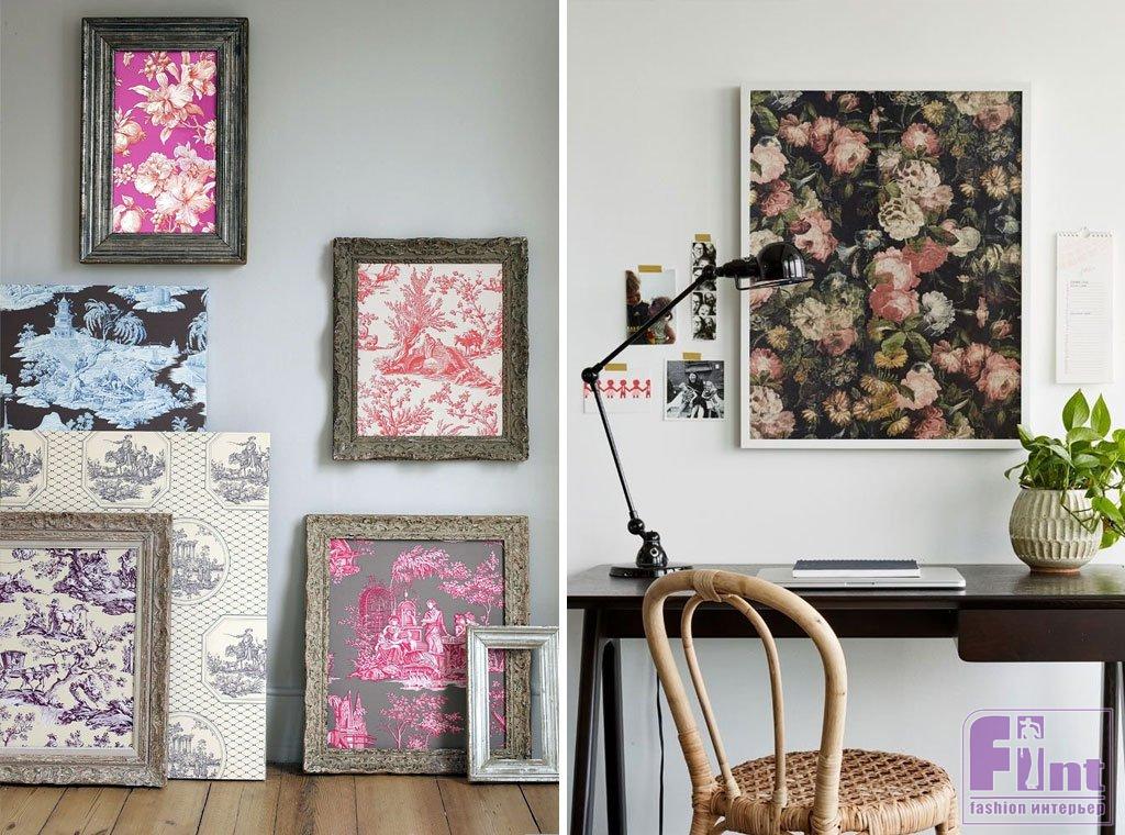 Если после прошлых ремонтов у вас или ваших родственников осталось немного обоев, их можно превратить в интересную альтернативу картине или постеру. Подберите рамку желаемого размера и поместите в неё подходящий фрагмент полотна обоев. Подойдет как полотно с мелким повторяющимся узором, так и часть более крупного рисунка, аккуратно обрезанного до нужного размера. Такой аксессуар может быть наполнен потрясающим смыслом. Например, используя обои из старого бабушкиного деревенского дома, вы получите милое напоминание о беззаботном детстве, проведённом в гостях у бабушки.