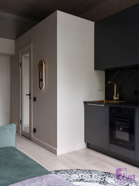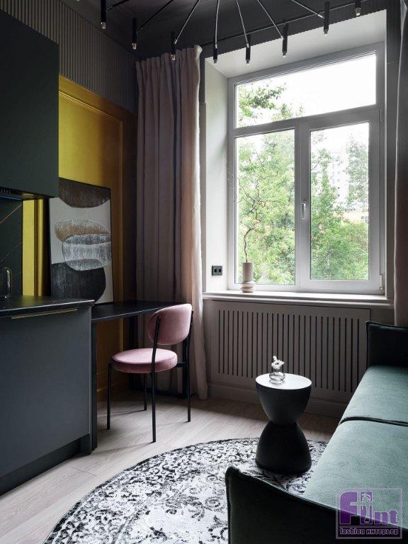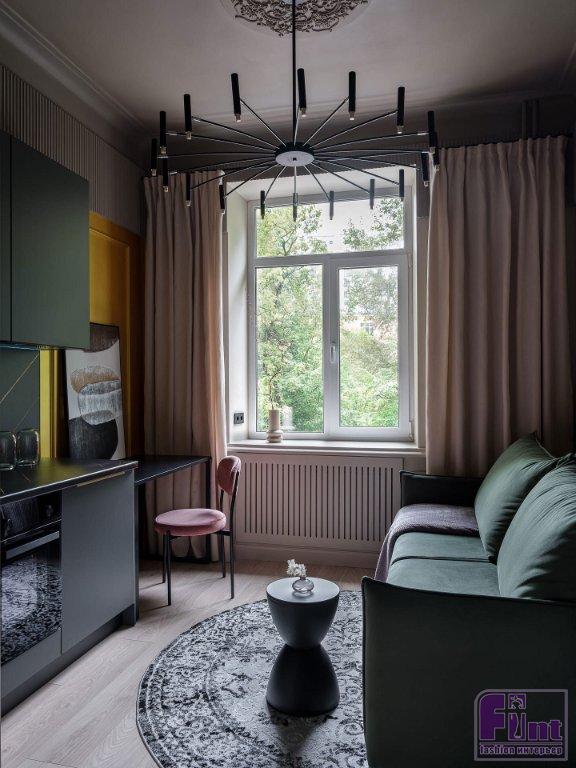 «Нашей задачей было сделать из маленького помещения пространство, которое визуально будет казаться больше, в котором будет много воздуха, где будет приятно находиться. Потенциальные жители — это студент или пара студентов, которые много времени проводят вне дома, но хотят иметь свой уголок. Также эти апартаменты отлично подойдут для арендного бизнеса», — комментируют дизайнеры.