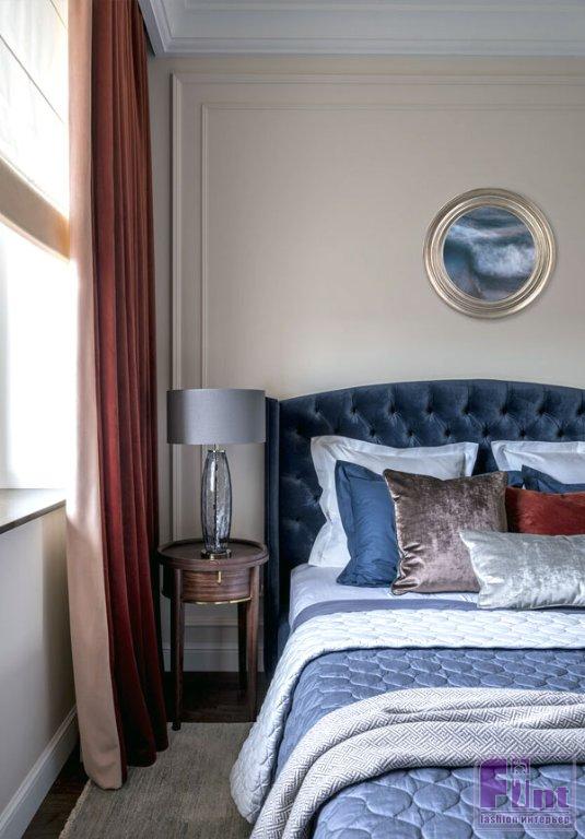 Зеркала в спальне любят не все, потому что ночью случайное отражение может вызвать дискомфорт или даже напугать. В этом случае оптимальным становится размещение зеркала за изголовьем, не по траектории взгляда лежащего в кровати человека. Это может быть вертикальная панель от пола до потолка, если нужно видеть свое отражение во весь рост. А может — небольшая декоративная модель необычной формы или в интересной раме. Такое зеркало станет отличной заменой стандартному постеру или картине, а ещё будет отражать свет и делать спальню визуально более просторной.