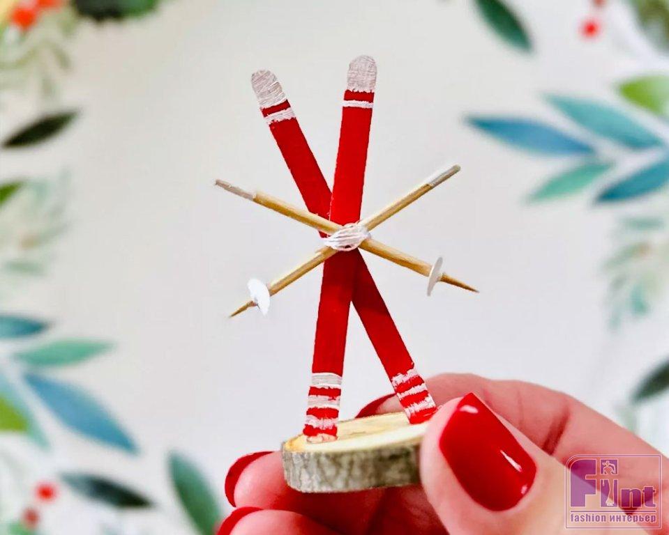 1. Делаем 12 миниатюрных пар ретро-лыж.