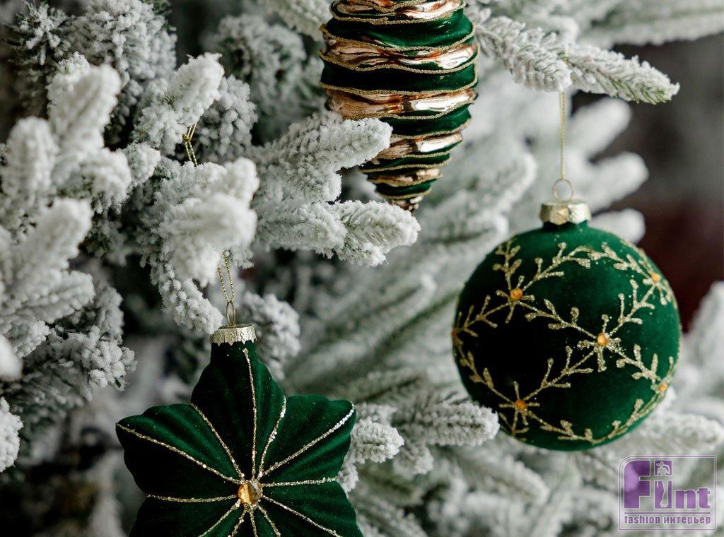 Цвет Змеи в наступающем году — зелёный. Он же — оттенок самой ели, а также одна из основных цветовых ассоциаций с Новым годом. Несмотря на то, что хвойные лапы и так зелёные, можно усилить эффект и продублировать цвет в игрушках. Выбирайте сложные глубокие тона: изумрудный, малахитовый, можно с синим отливом.