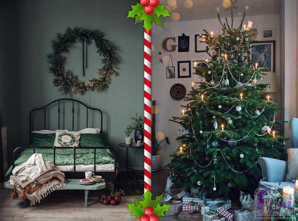 Остальной декор подбирайте под выбранный стиль и в общей палитре. Для каждой комнаты подойдёт что-то своё. Детскую можно украсить милыми подушками, фигурками новогодних персонажей, забавных животных. Кухню — постерами с новогодним сюжетом, тематическими салфетками или полотенцами, поставить на стол маленькую вазочку с еловой веткой, повесить на окно гирлянду из корицы и сушёных фруктов. В спальне особую атмосферу создадут гирлянды с мягким свечением и ароматические свечи — особенно в сочетании с постельным бельём в праздничных цветах и орнаментах.