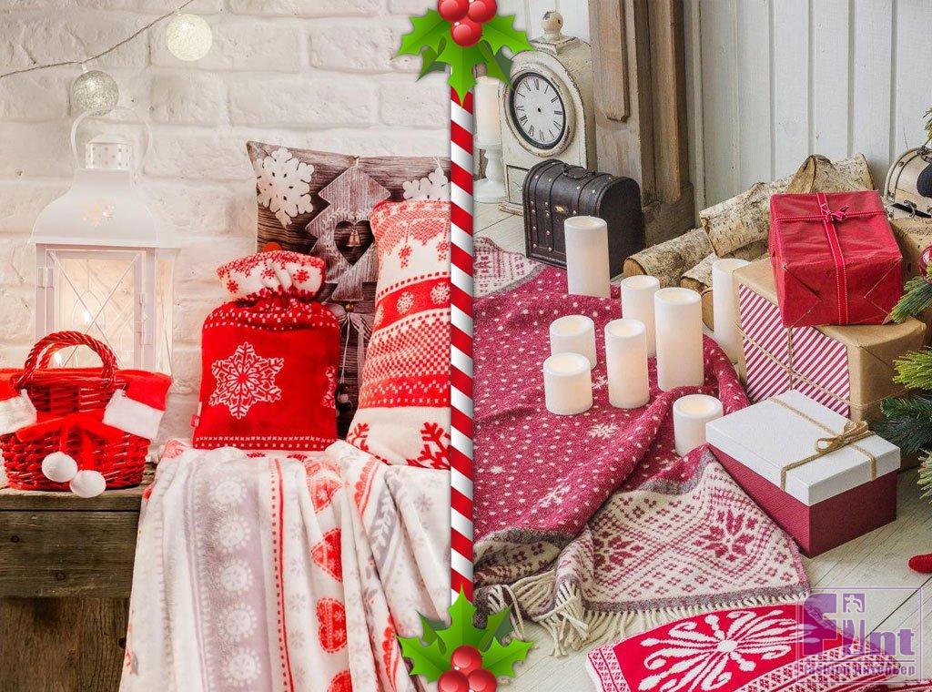 Не стоит забывать про текстиль — он играет такую же важную роль в создании праздничной атмосферы, как елка или гирлянды. В зависимости от общего стиля можно пойти двумя путями:
