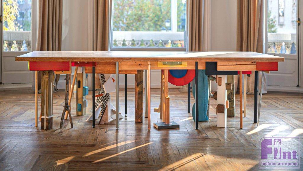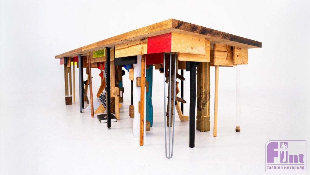 На самом деле цель дизайнеров вполне благая: «Мы хотим, чтобы люди думали: „Черт, мне попалась ножка!“ А потом радовались, что они не одни такие невезучие, и что за этим столом все равны». Стол имеет в длину 2,75 м, и у него целых 34 ножки, причем, все разные! «Этот стол переосмысливает традиционный дизайн как нечто полезное и функциональное и предлагает взглянуть на него с другой, ироничной стороны», — говорят авторы необычного объекта.