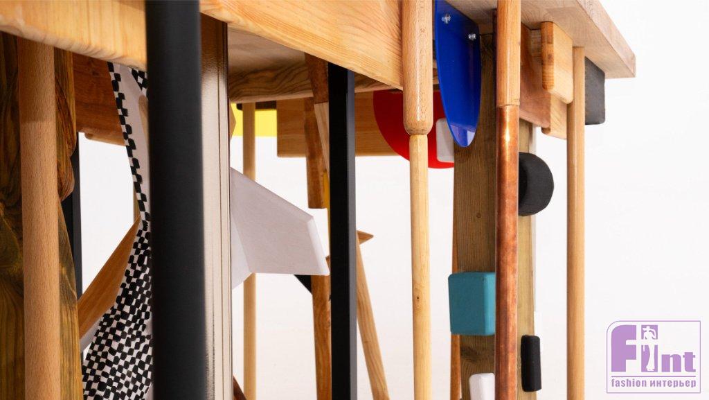 Каждая ножка была изготовлена по-своему. Хромированные и оцинкованные стальные ножки блестели рядом с медными и метакрилатными. Контрастные материалы были использованы для создания визуальной какофонии, подчеркивающей революционный замысел стола и отражающей разнообразие семейных традиций по всей Испании. Хаотичное расположение ножек объединено столешницей из цельного дуба толщиной в четыре сантиметра, которая покрыта смесью тикового масла, льняного масла и дополнительных лаков, которые повышают её долговечность и естественную эстетику. «Мы хотели, чтобы стол казался неподвластным времени — что-то, что не было бы привязано к какому-то определенному стилю или эпохе, но в то же время каким-то образом принадлежало бы им всем», — рассказали дизайнеры коллектива. «Прочность и долговечность дуба идеально сыграли нам на руку».