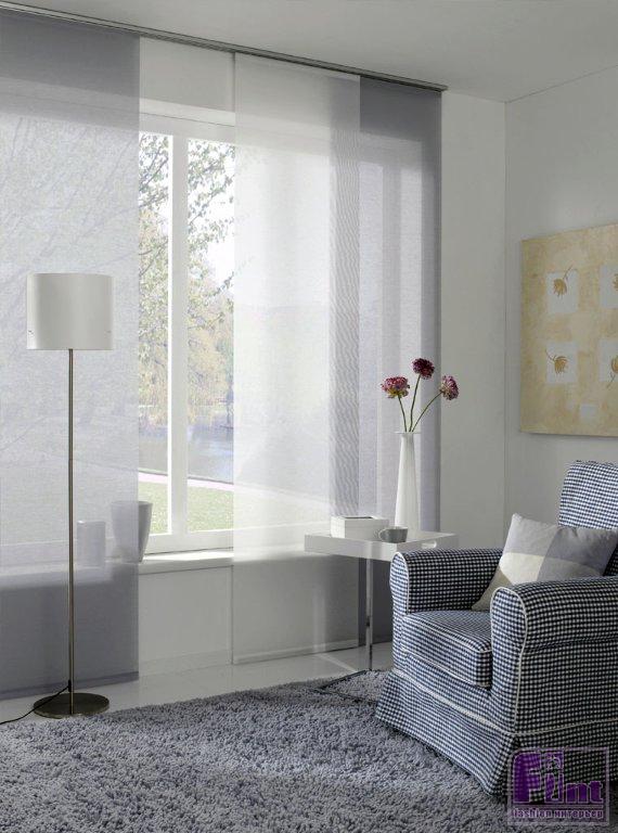 В восточных странах привычные для нас шторы не так распространены, а вот льняные, шелковые или бамбуковые вертикальные панели есть практически в каждом доме. Конструкция представляет собой прямоугольные широкие полотна. Внизу каждого отрезка ткани — грузик, который создает натяжение. Благодаря этому нет никаких лишних складок, панели выглядят лаконично и деликатно. Такая альтернатива портьерам будет особенно хорошо смотреться в интерьерах, оформленных в стилях минимализм, джапанди, эко, ваби-саби и восточных стилях.