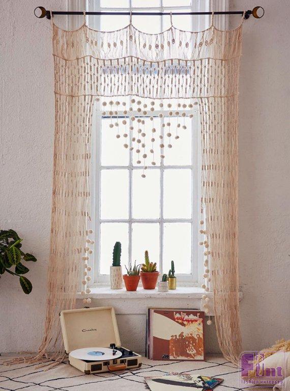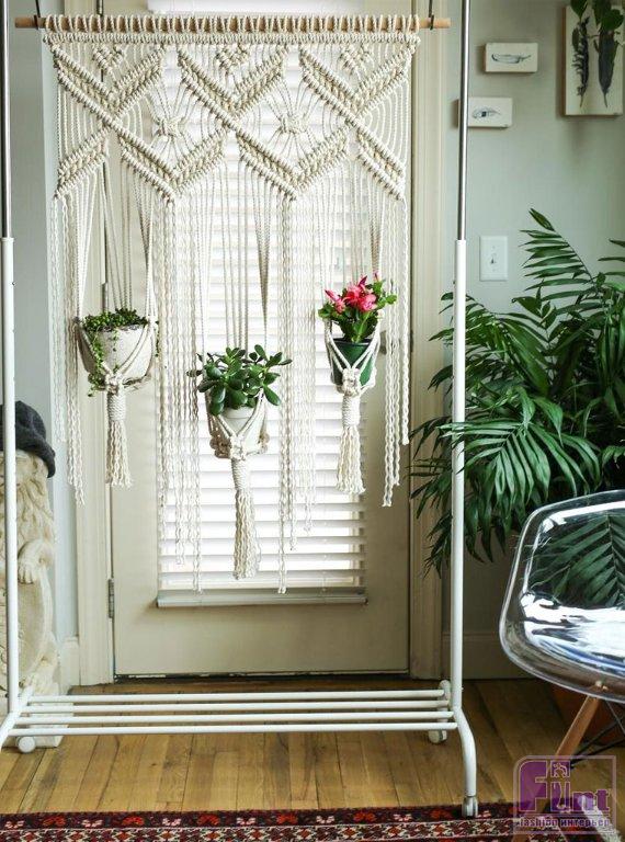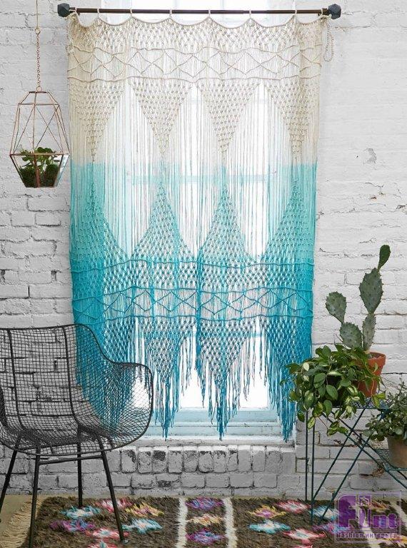 Макраме — характерный атрибут стилей бохо, рустик и прованс. Но вписать плетёный декор можно и в скандинавский стиль, и в минималистский интерьер. Из-за размера нитей и особенностей плетения такие занавески не защитят от солнечных лучей, зато выглядят очень уютно и интересно. Любители рукоделия могут сделать их своими руками. Это отличная возможность проявить творческую жилку: выбрать дизайн, цвет ниток и дополнительных элементов.