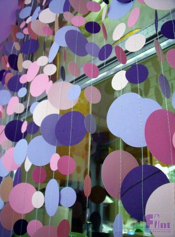 Если вопрос затемнения не принципиален, то это ещё одна красивая, исключительно декоративная альтернатива классическим шторам. Бумажные гирлянды добавляют интерьеру воздушности и праздничного настроения каждый день. Такое украшение однозначно подойдёт для комнаты девочки или спальни девушки, но можно подобрать дизайн и для других помещений: например, украсить окна на кухне. В магазинах есть множество готовых вариантов, также совсем не сложно сделать бумажные гирлянды самостоятельно. Понадобятся только толстые нити, плотная бумага или картон, ножницы и дополнительный декор по желанию.