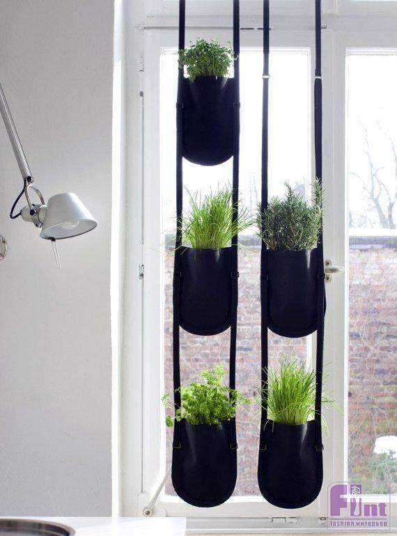 Большинство комнатных растений и так находят свое место на окне, так почему бы не устроить на подоконнике миниатюрный зимний сад, заменив шторы пышной зеленью? Для подвесных кашпо можно дополнительно установить стойку. Так у вас получится озеленение в два ряда, при этом ветви ампельных цветов будут свисать вниз и даже частично затемнять комнату. Главное — ставить под прямые солнечные лучи можно только те растения, которые любят яркий свет, иначе есть риск, что растения получат ожоги и зачахнут.