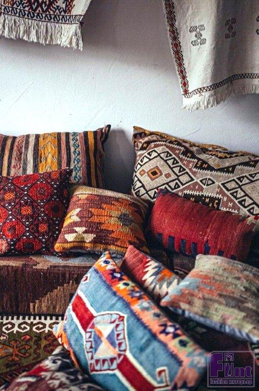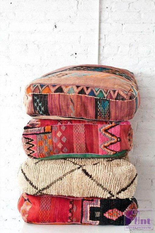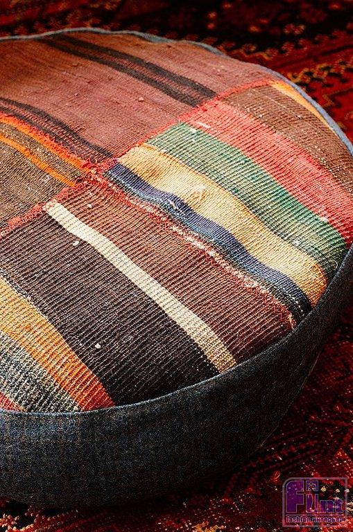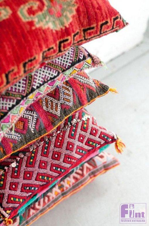 Тонкий ковёр с интересным узором можно превратить в наволочку для декоративной подушки — одной или сразу нескольких. Яркая фактурная ткань станет акцентом в интерьере. Сшить квадратный или прямоугольный чехол несложно самостоятельно. Тщательно очистите материал и обработайте края, чтобы они со временем не осыпались. Для удобства добавьте молнию или завязки. Такая наволочка подойдёт для оформления дивана, кресла или кровати.