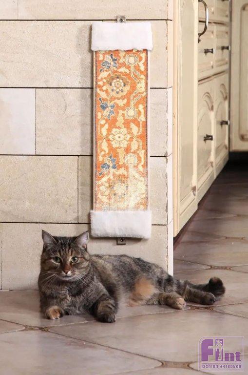 Если у вас есть кот или кошка, из остатков ковра (даже в небольшом количестве) с жестким ворсом получится отличная когтеточка. Оберните им деревянную основу или пластиковую канализационную трубу, закрепите строительным клеем или скобами. Установите изделие там, где питомцу будет удобно и безопасно им пользоваться. Можно сделать и более сложную конструкцию, совместив когтеточку с кошачьим домиком. Или, наоборот, пойти по более простому пути и закрепить фрагмент ковра на стене или на углу так, чтобы животное до него свободно дотягивалось.