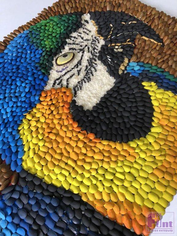 Натуральные природные материалы довольно активно используют в своих поделках многие любители рукоделия по всему миру. Особо выделяется из списка возможностей, которые дают природные материалы, техника создания картин и панно из семян, ореховой скорлупы, всевозможных злаков и косточек. В ход идёт скорлупа от фисташек, рисовые зёрна, арбузные и тыквенные семечки и даже крупные косточки от фруктов. Сегодня мы расскажем, как своими руками сделать невероятное по красоте настенное панно с ярким попугаем, используя семена, обычный белый рис и одну косточку от манго.