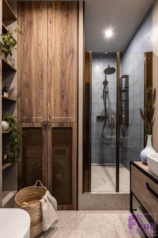 В ванной комнате основной акцент делается на голубые оттенки, которые вносят свежесть и лёгкость, напоминая о спокойствии морских глубин. Эти цвета способствуют расслаблению и создают ощущение чистоты, идеально подходят для этого функционального пространства.