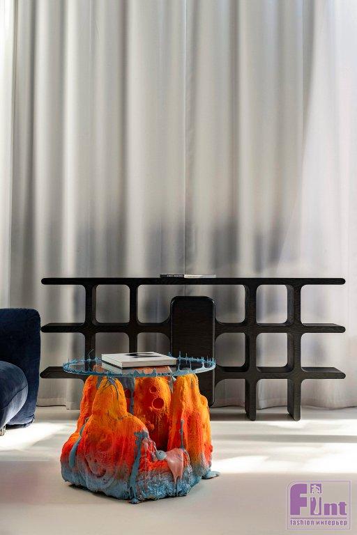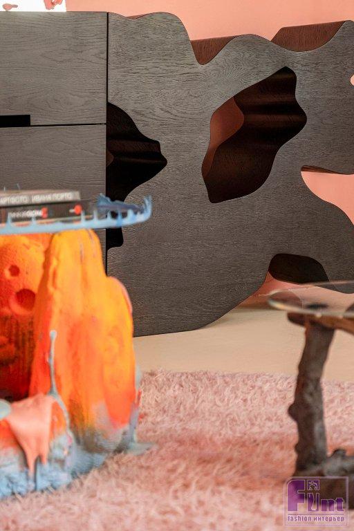 Объекты, которые создаёт ODINGENIY — это всегда междисциплинарные союзы, часто очень неожиданные. Обилие материалов, таких как бетон, полимеры, силикон, дерево, керамика, ткань, помогает создавать многослойные яркие образы. В марте 2025 года студия откроет монобрендовое пространство в ТЦ «Гранд» в Химках, где можно будет оценить вживую серийные предметы мебели, стеновые панели и получить профессиональную консультацию. У студии своё производство, поэтому возможно изменение отделок и размеров серийных предметов.