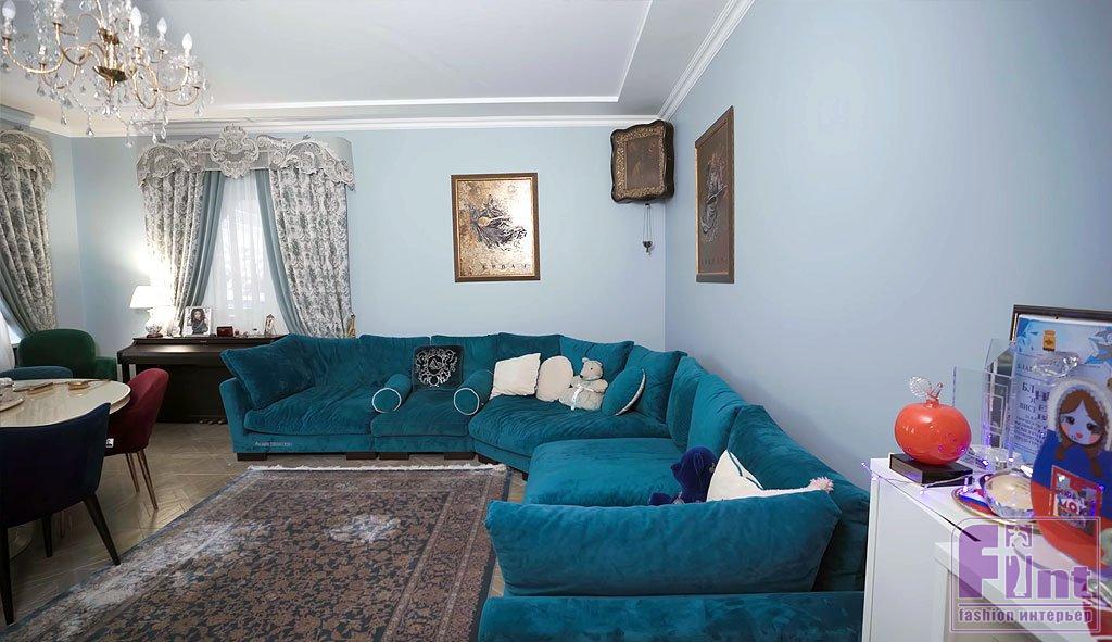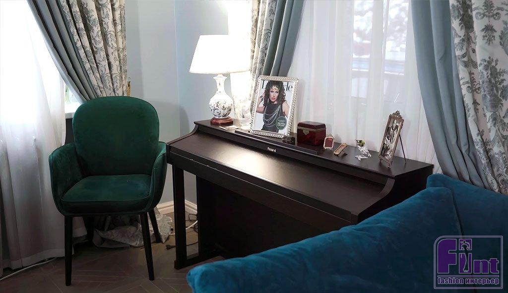 Гостиная в доме Эвелины Блёданс – это не просто место отдыха, а настоящий музей воспоминаний. Здесь собраны памятные вещи, награды актрисы и многочисленные предметы искусства. Круглый стол с вращающейся центральной частью – идеальное решение для семейных ужинов и приёма гостей. Уникальные шторы с инициалами звезды и ручной вышивкой, выполненные на заказ, украшают не только гостиную, но и весь дом.
