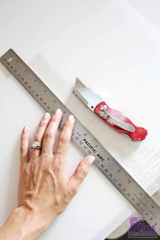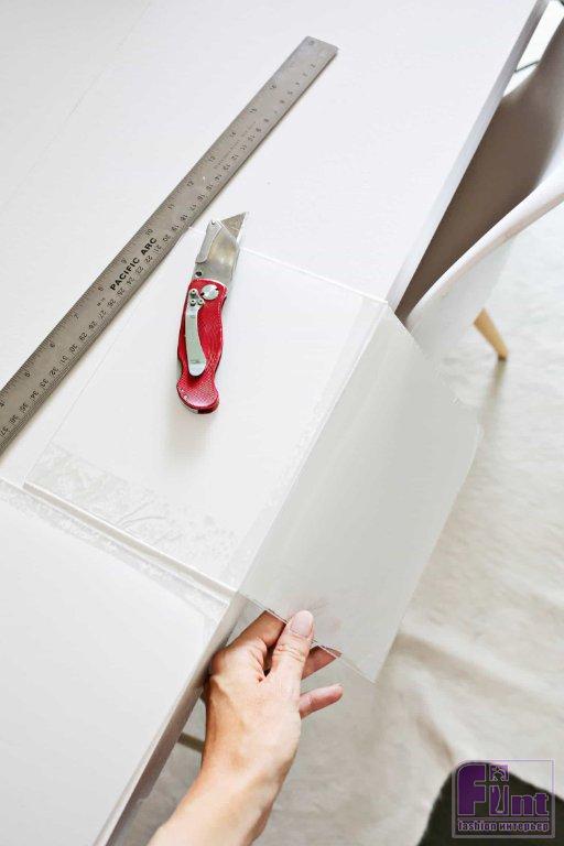 Просто разметьте лист акрилового стекла по нужным размерам и проведите глубокую линию с помощью канцелярского ножа и металлической линейки, пройдитесь по линии надреза несколько раз, чтобы прорезать стекло более чем на половину. Акриловое стекло очень хорошо поддаётся такому простому способу резки.