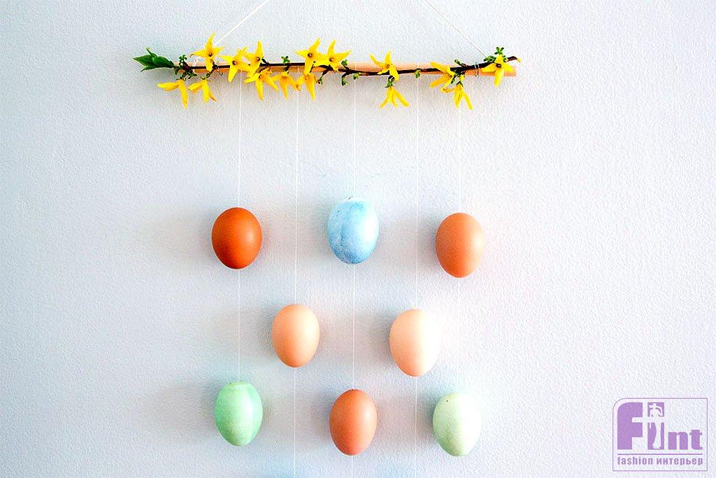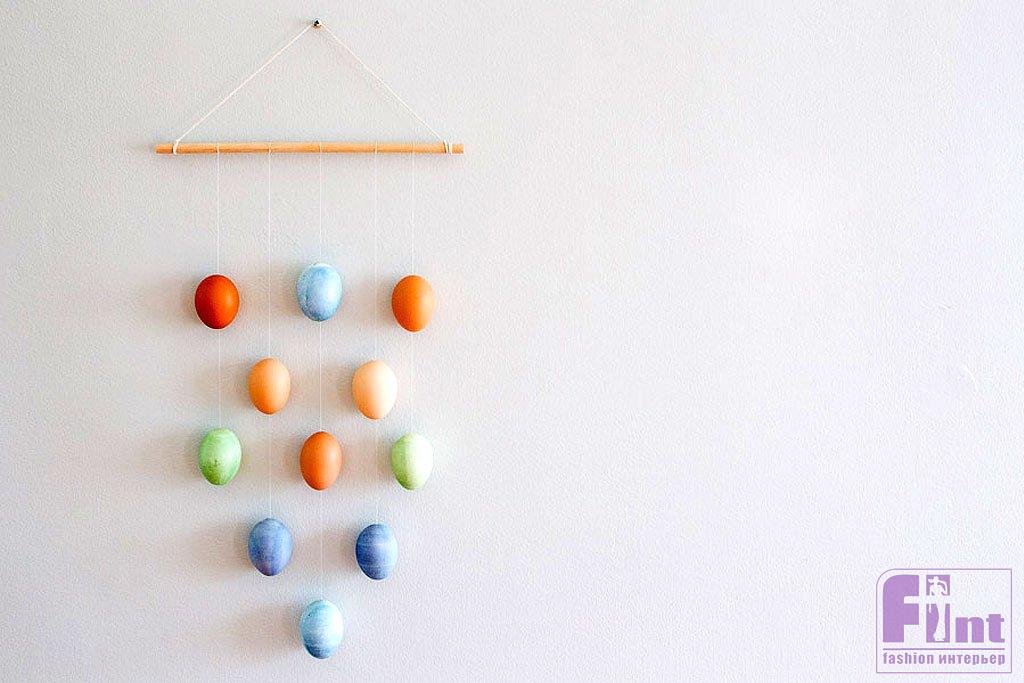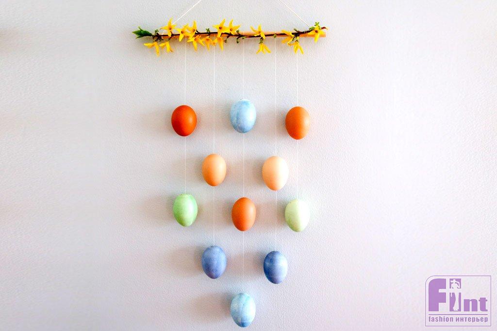 Яркая пасхальная подвеска на стену из крашеных яиц