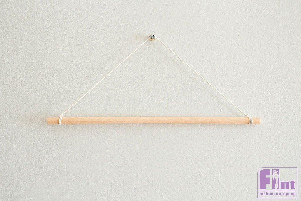 Повесьте деревянную палочку на хлопчатобумажный шпагат. Закрепите оба конца шпагата, обернув их вокруг концов палочки и завязав двойной узел. Длину петли рассчитывайте таким образом, чтобы палочка висела красиво, на достаточном удалении от места крепления.