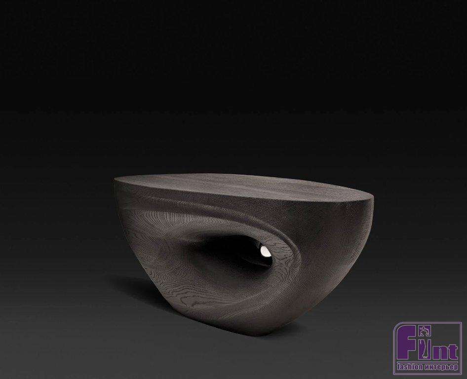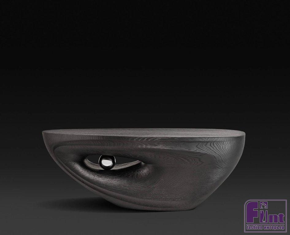 Журнальный стол «Частица» раскрывает двойственность материи и духа. Вдохновением для предмета стала жемчужина, которую держит в пасти китайский дракон Фуцанлун. Жемчужина — символ сконцентрированной энергии, неразрывности материи и духа. Здесь смысловым центром стал металлический шар, вписанный в монолитную конструкцию стола. Стол создан из отборного дуба с применением технологии обжига, которая делает древесную текстуру мягкой, тактильно приятной.