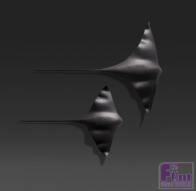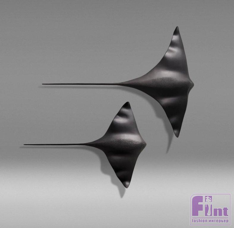Панно-диптих «Волна» вдохновлён морем и его удивительными обитателями — чёрными скатами, у которых по бокам находятся электрические органы. Двигаясь грациозно и размеренно, плавники скатов изгибаются, повторяя форму волны. Панно создано из специального вида белого тополя, на гладких матовых спинках скатов проступает рельефная сетка.