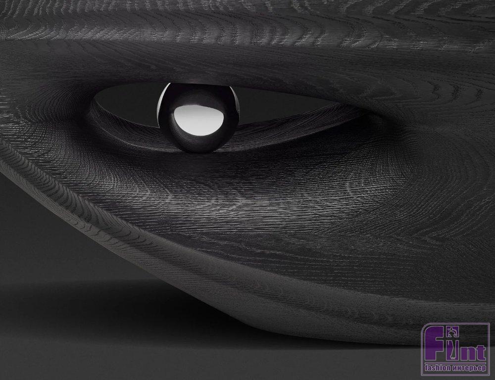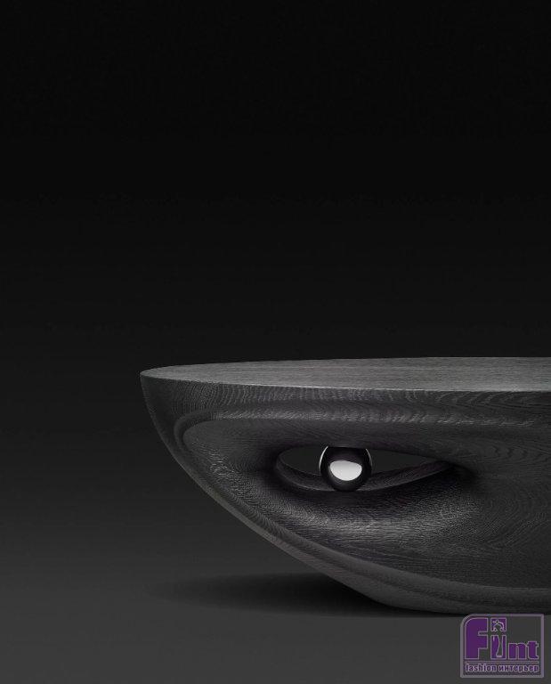 Журнальный стол «Частица» раскрывает двойственность материи и духа. Вдохновением для предмета стала жемчужина, которую держит в пасти китайский дракон Фуцанлун. Жемчужина — символ сконцентрированной энергии, неразрывности материи и духа. Здесь смысловым центром стал металлический шар, вписанный в монолитную конструкцию стола. Стол создан из отборного дуба с применением технологии обжига, которая делает древесную текстуру мягкой, тактильно приятной.