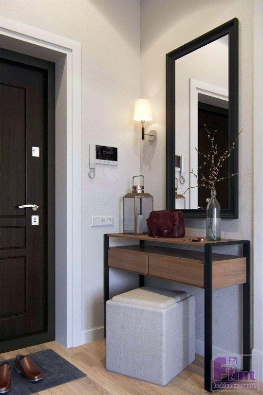 В прихожей необходимо место, куда при входе можно положить ключи, солнцезащитные очки, поставить сумку. Желательно, чтобы эта мебель для прихожей была оснащена выдвижными ящиками — так будет удобнее хранить такие мелочи, как средства для обуви, перчатки. Поэтому дизайнеры нередко выбирают консоли. Они не занимают много места. А над консолью можно повесить зеркало. В прихожих, где для консоли нет места, стоит повесить хотя бы узкую полочку. И тогда зеркало разместится над ней.
