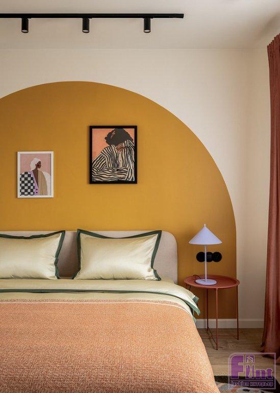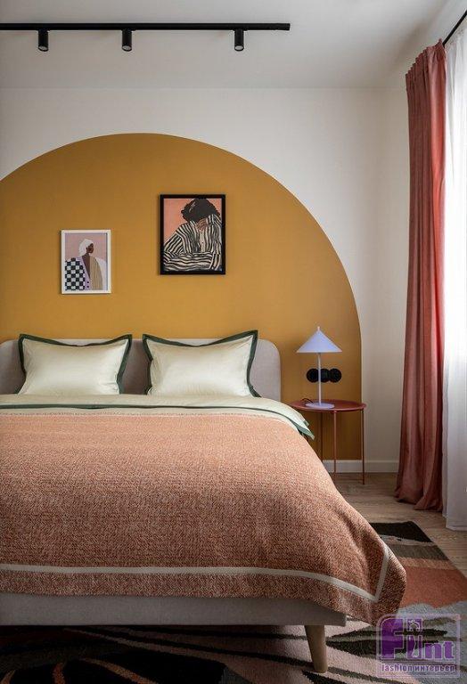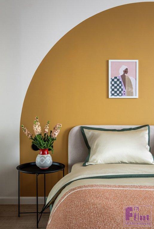 «Мы выбрали скандинавский стиль с элементами минимализма, французского стиля — получилась некая эклектика. Арочная тема проходит по всей квартире в различных элементах: перегородка между гостиной и кухней, керамогранит для фартука кухни, арочная форма в спальне и на лоджии. В спальне, например, горчичная арка символизирует восход солнца», — дополняет свой рассказ о проекте Мия.