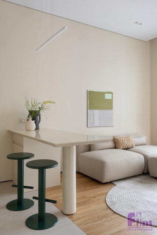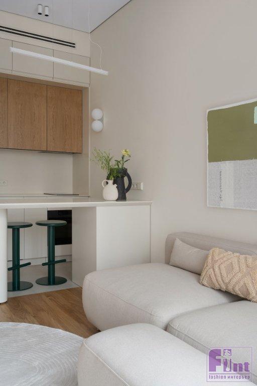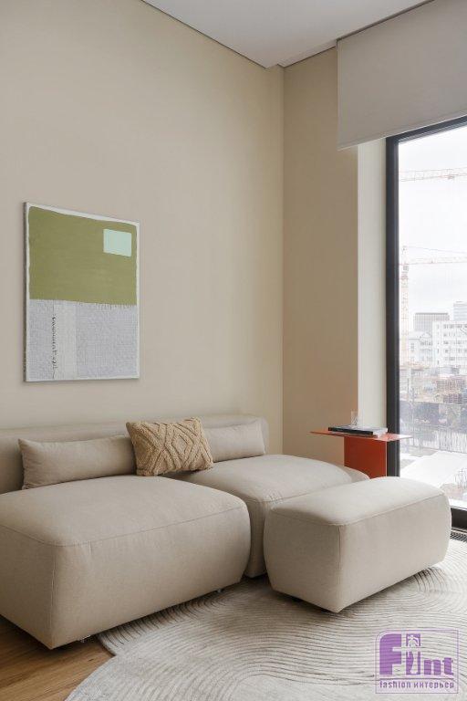 «На площади 37 кв. м удалось создать пространство, где каждая деталь продумана до мелочей, и функциональность сочетается с минималистичным дизайном. Цветовая гамма интерьера построена на сочетании тёплых бежевых оттенков с терракотовыми акцентами. Такой выбор создаёт атмосферу уюта и комфорта, при этом, визуально не перегружая пространство. Этот проект — идеальный пример того, как можно создать комфортное городское жильё в центре столицы, где каждый квадратный метр работает на эстетичный комфорт. Картины для проекта я писала сама. В спальню хотелось добавить охровых оттенков и немного загадочности, так родилась картина «Мираж». В гостиной — картина с текстильной аппликацией, которая собирает весь интерьер в единое пространство», — завершает рассказ о проекте дизайнер.