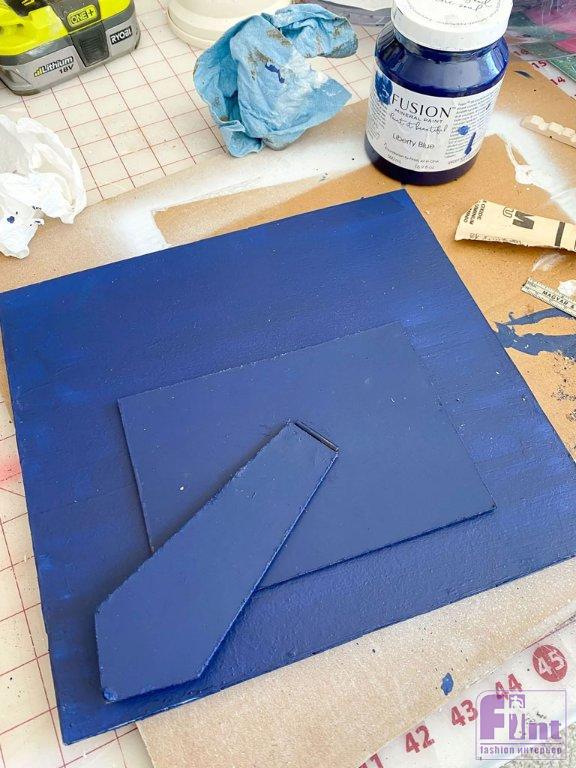 Покрасьте прищепки, а также открытую часть для фотографий и боковые стороны картонного основания. Как только краска высохнет, покрасьте заднюю часть рамки той же краской. Дайте изделию полностью высохнуть.
