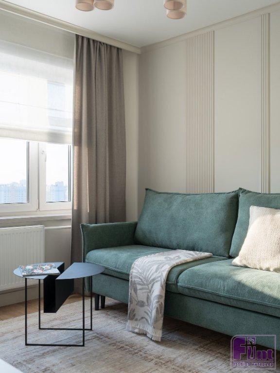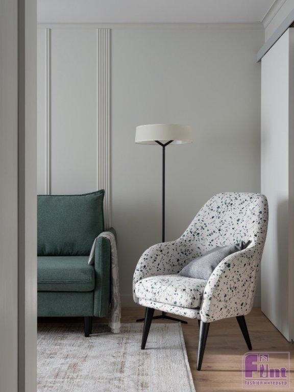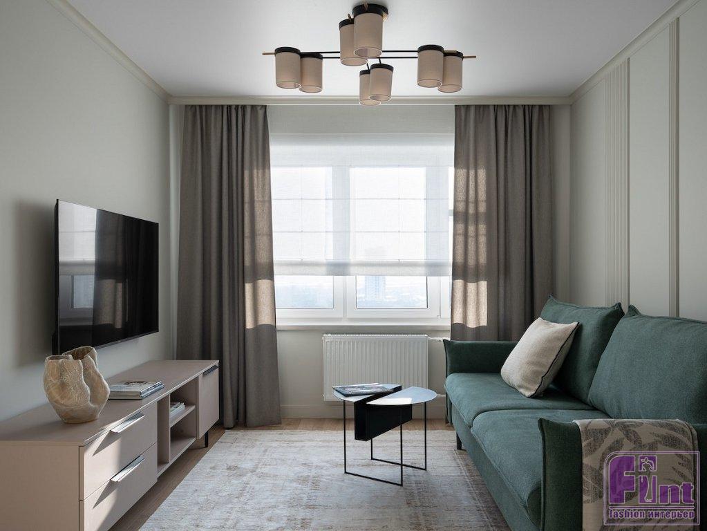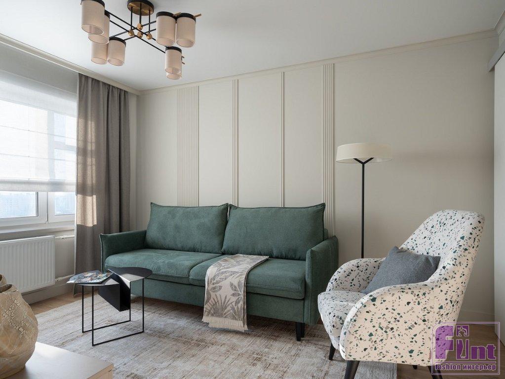 Квартира расположена в доме, построенном в 2000-х годах. Большое количество несущих стен ограничивало дизайнера в перепланировке. Поэтому Наталья предложила только возвести дополнительные перегородки: в гостиной отделили гардеробную, сделали ниши для встройки шкафов в прихожей и спальне. В выборе отделки старались соблюсти баланс между современным стилем и классикой. Так, стены покрашены светлой краской, в спальне для легкого ненавязчивого акцента добавили обои под покраску. В обеих комнатах разнообразили отделку настенными молдингами.