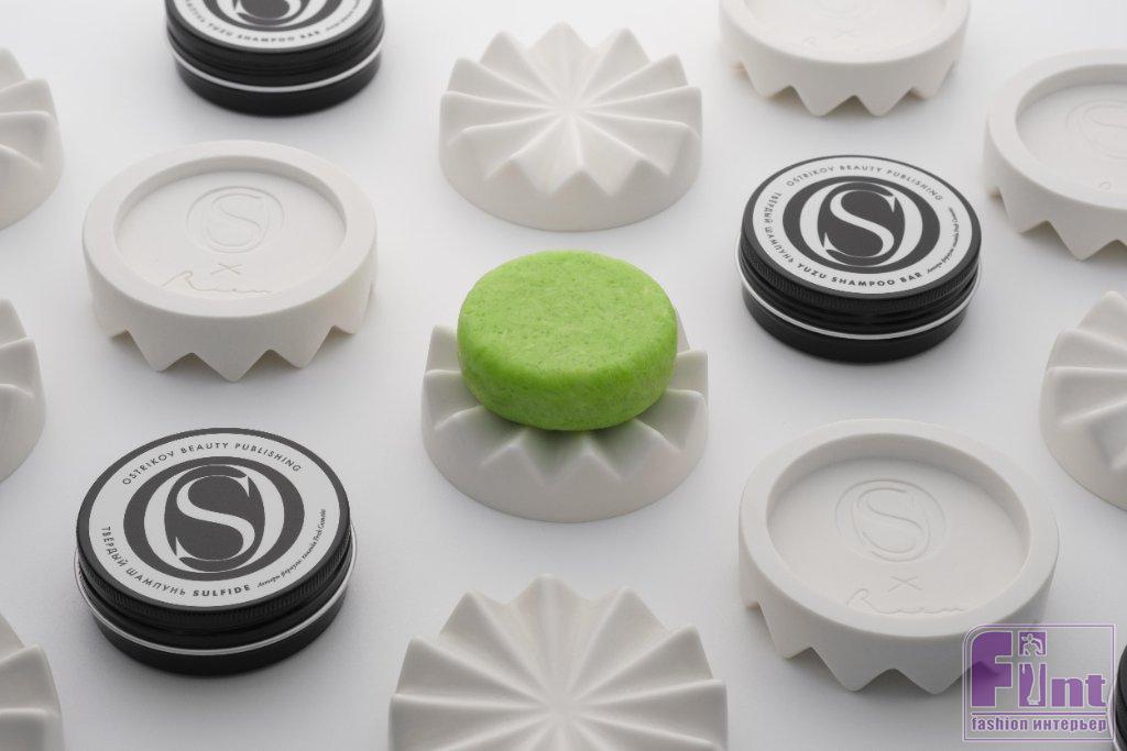Мыльница создана известным российским дизайнером и керамистом Иваном Убеевым для твёрдого шампуня La Porcelaine Limitee от Ostrikov Beauty Publishing.
