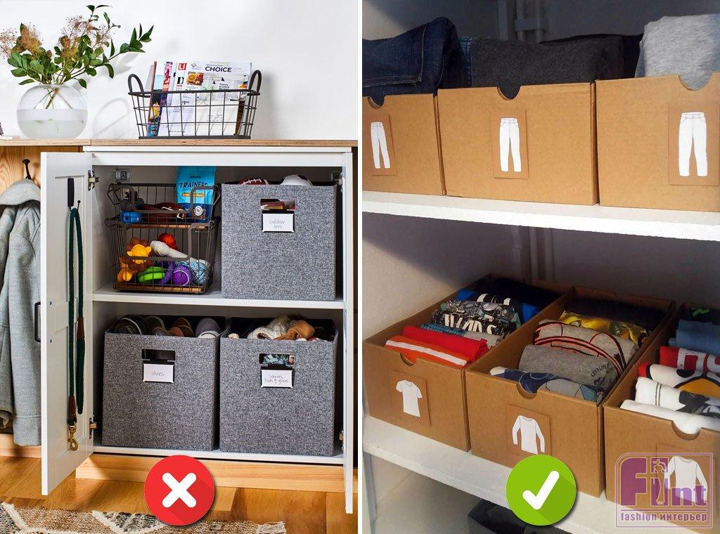 Универсальные органайзеры, как правило, покупают с надеждой скрыть с глаз весь беспорядок, но чаще всего внутри оказывается такой же хаос. Вещи перемешиваются, нужное — не найти. Особенно если вы храните в крупных ёмкостях детские игрушки, предметы для рукоделия, сезонную одежду или аксессуары. Вместо одного большого объёма лучше использовать несколько одинаковых ящиков, контейнеров или корзин поменьше, разделённых по категориям. Добавьте подписи или используйте разделители — так хранение будет более удобным и аккуратным.