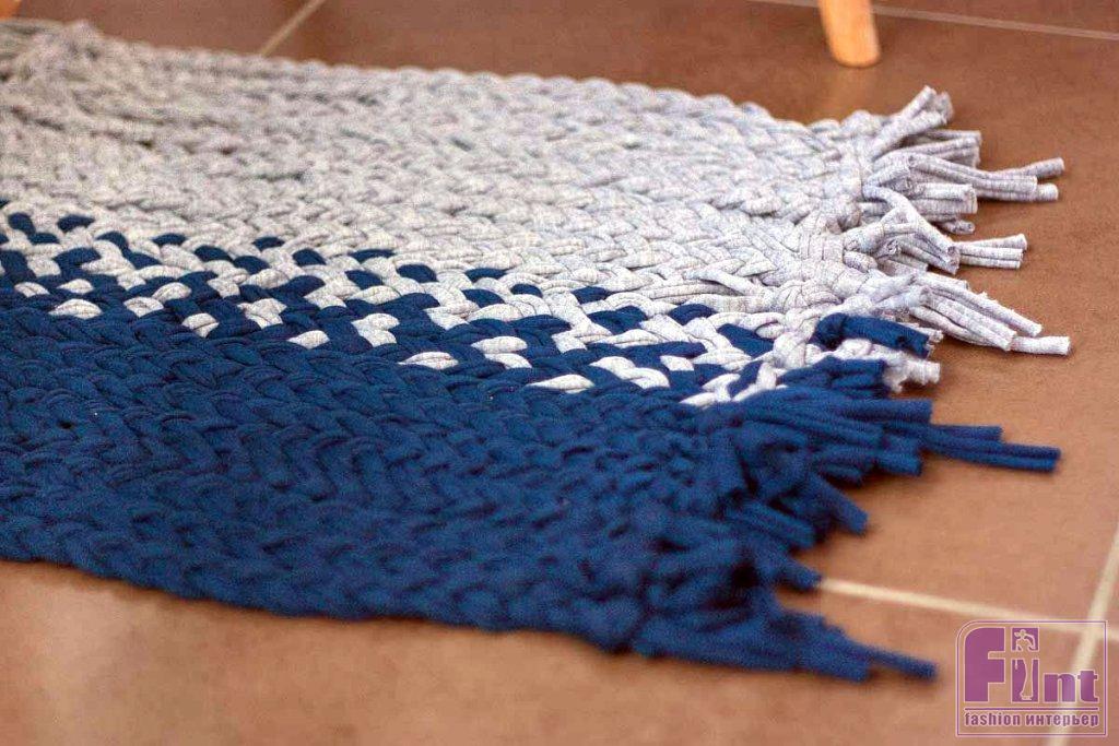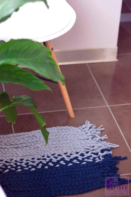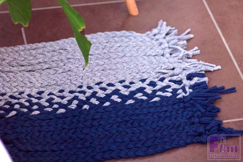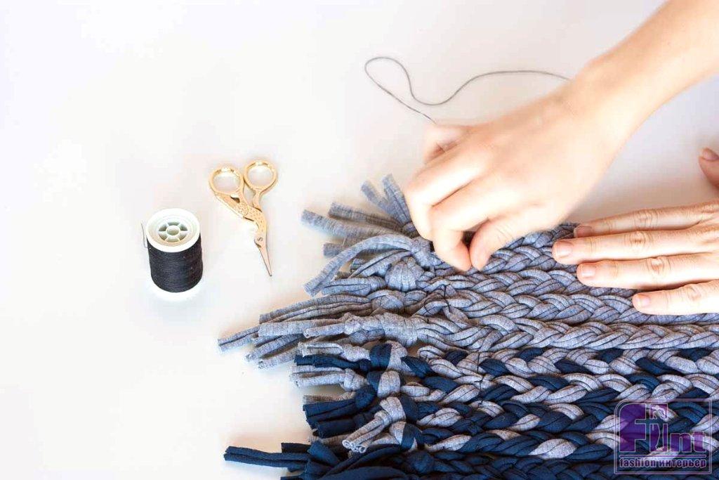 При желании в момент сшивания косичек можно добавить на оборотную сторону коврика противоскользящую подложку. В такой технике вы можете сделать коврик любого нужного вам размера, а использование цветной трикотажной пряжи позволит органично вписать его в цветовую гамму вашего интерьера!